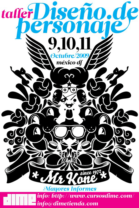 Hola para todos los que quieren saber como crear su Art toy propio, los dias 9, 10 y 11 de Octubre se llevará a cabo el taller de Diseño de Personaje impartido por Cesar Evangelista «Mr. Kone«. el curso es de ilustración, pero es la base para tener idea de como diseñar su personaje