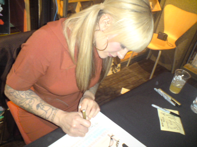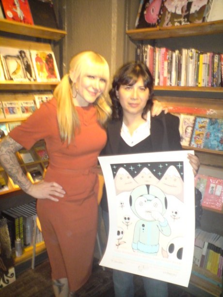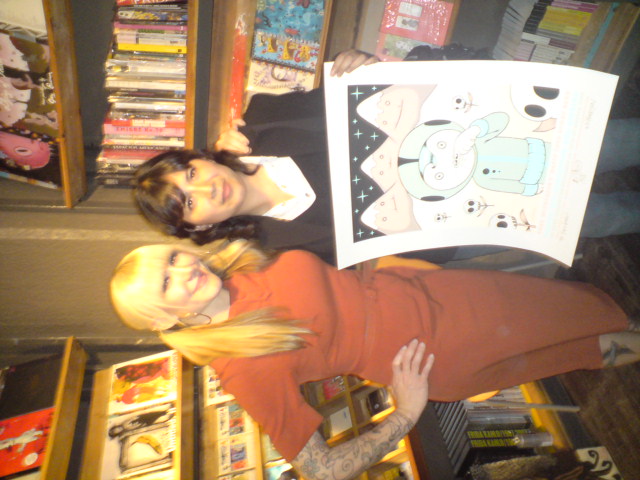 Después de una larga fila pudimos entrar a Gurú y ver la obra de Tara Mcpherson, asi tambien como el cartel que le imprimío el maestro Arturo Negrete para la promoción del evento, ademas tuvimos la oportunidad de platicar con Mr. Kone y el maestro Arturo quienes ya preparan la segunda etapa del Taller en Vida que tanto exito tuvo en su primera etapa.