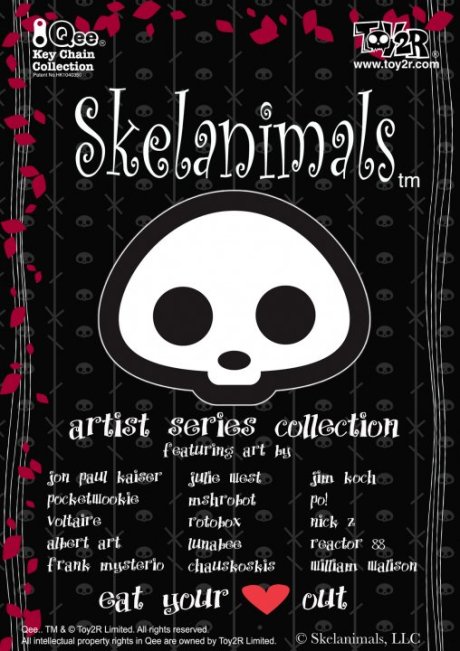 TOY2R anuncio en su Facebook la nueva serie: Artist Series Collection de sus Skelanimals. Esta serie será lanzada con todos los nuevos Qee de 3” basado en los populares personajes de Skelanimals. Cada uno de ellos incluía un accesorio para hacer un … Qee Llavero.