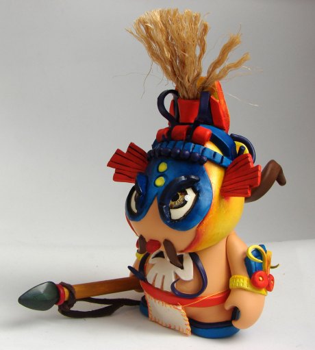 Este Bub de Kidrobot es un custom realizado para Gusstoy de Puebla se llama el Guerrero Maya, esperamos les guste y un saludo a Gusstoy la técnica utilizada fue Sculpey y pinturas acrílicas