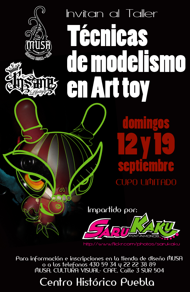 Aquí les pasamos la información del taller que impartiremos en la galería Musa en Puebla, ademas en la foto un adelanto de uno de los 5 señores del inframundo que presentaremos el próximo 4 de Septiembre en la misma tienda, esperamos se animen y puedan asistir