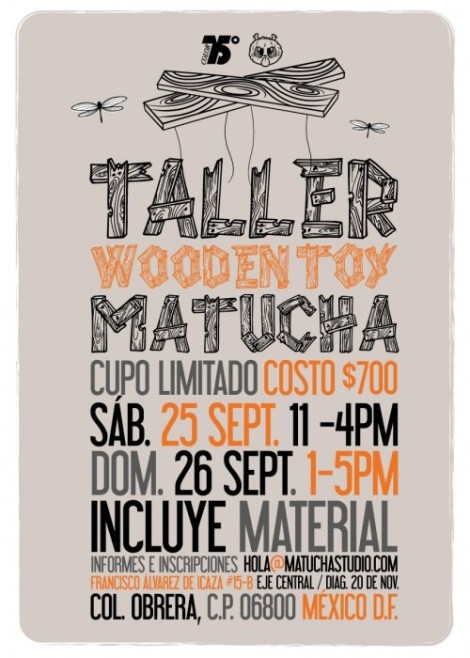 También se pueden inscribir al taller de art toy de madera los dias 25 y 26 de septiembre en la misma dirección para mas informes en hola@matuchastudio.com