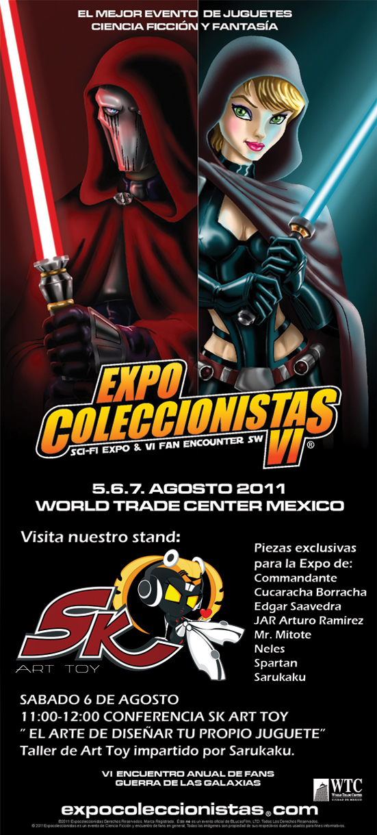Este año SK estará presente en este gran evento, tendremos piezas de kidrobot, toy2r, mimobot, muttpop, android, mindstyle, sarukaku y piezas exclusivas de importantes diseñadores como Commandante, Cucaracha borracha, Edgar Saavedra, Arturo Ramírez, Mr. Mitote, Neles, Spartan y Sarukaku.